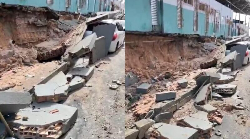 Muro de feira desaba e atinge veículos durante temporal em Manaus